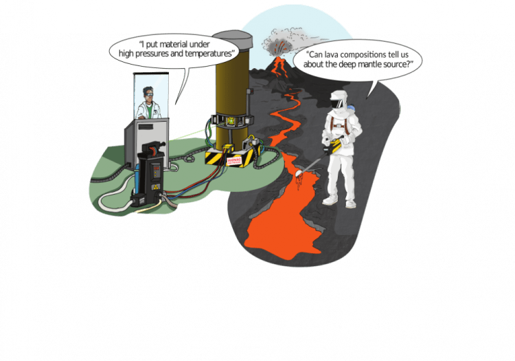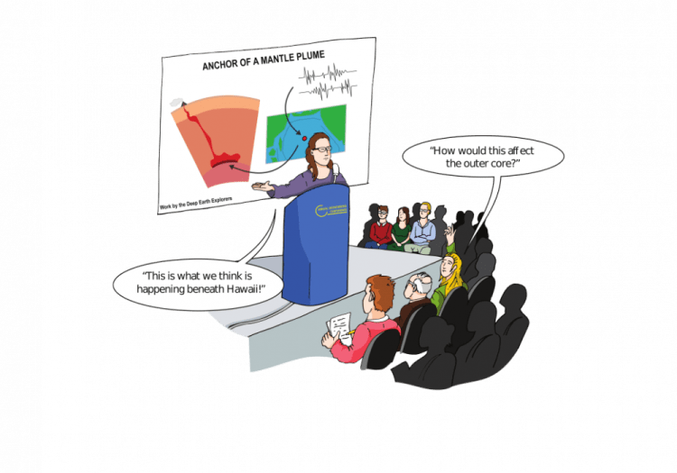 We found that the museum public were very interested in what deep Earth researchers do day-to-day. Dr Gautier Nicoli turned the whole team into cartoons to tell the story of a day in the life of Deep Earth Explorers. He also made cartoons, which the Deep Earth Explorer used on our instruction panels, and across the exhibition space. Our comic strip, Life as a Researcher, from our online exhibition Deep Earth Explorers gives an example of what a research project life cycle might look like. A lot of our work involves reading papers published in academic journals, conducting our own research, and communicating our findings to other scientists and the public.
